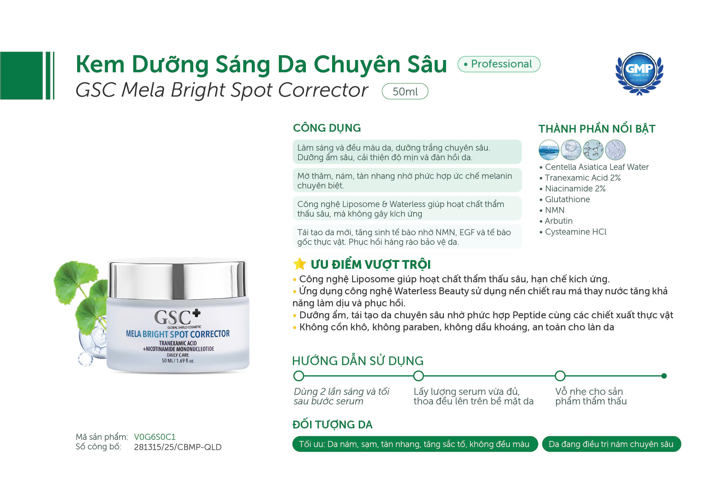 Hướng dẫn sử dụng kem dưỡng trắng da Mela GSC