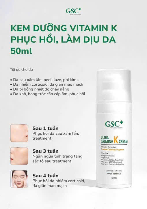 Kem Phục Hồi Thải Độc Da GSC Ultra Calming K Cream giúp tái tạo tế bào da, phục hồi da tổn thương, giảm nhanh các triệu chứng kích ứng và dị ứng da do mỹ phẩm, thời tiết.